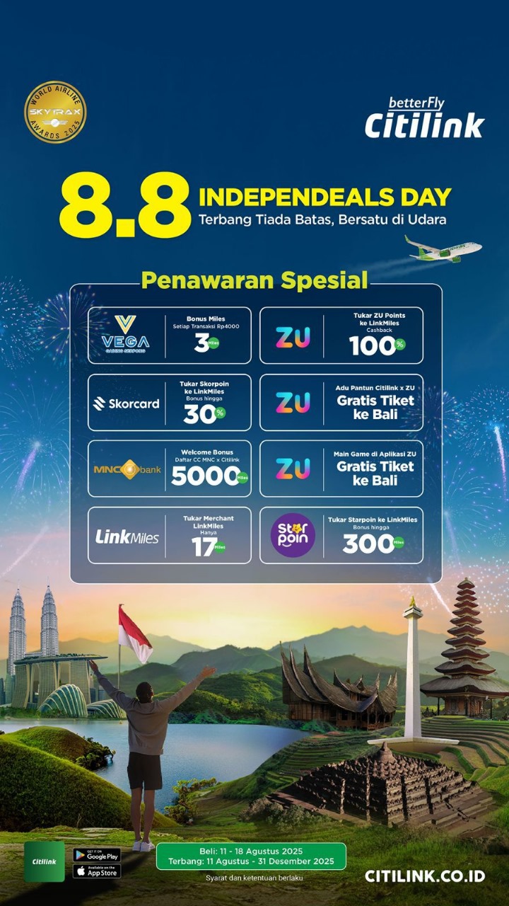 Tags: bonus miles CitilinkCitilinkLinkMilesParador HotelsPromo Hotel Tangerangpromo liburan Agustus 2025Vega Hotel Gading Serpong