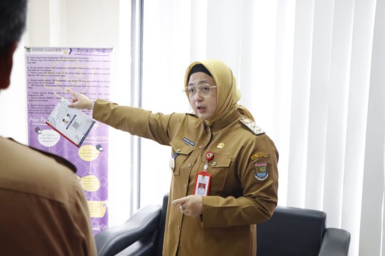 TANGERANG, WT – Wakil Bupati (Wabup) Kabupaten Tangerang, Intan Nurul Hikmah, melakukan kunjungan ke Posko Satgas Ketenagakerjaan untuk pelayanan konsultasi dan penegakan hukum terkait Tunjangan Hari Raya (THR) Keagamaan tahun 2025. Kunjungan ini berlangsung di Aula Gedung Dinas Tenaga Kerja (Disnaker) Kabupaten Tangerang pada Senin (10/03/2025).