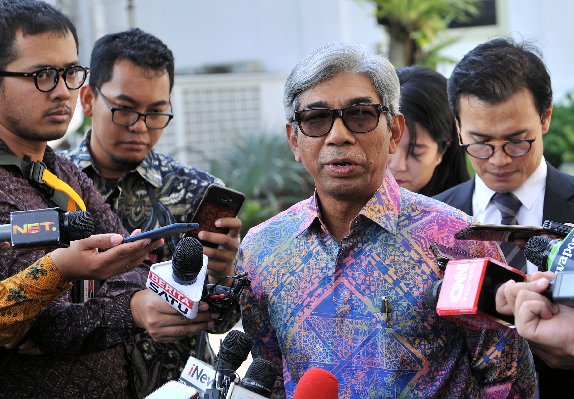 Wakil Menli AM. Fachir menjawab wartawan usai mendampingi Presiden Jokowi menerima delegasi Senat Ceko, di Istana Merdeka, Jakarta, Senin (17/9) pagi. (Foto: JAY/Humas)