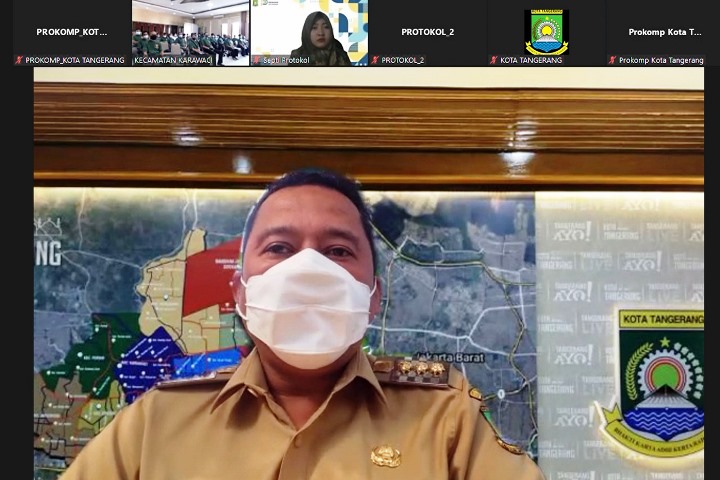 WARTA TANGERANG – Walikota Tangerang Arief R. Wismansyah hadir secara daring dalam kegiatan Koordinasi Penyelenggaraan Ketentraman dan Ketertiban Umum Serta Perlindungan Masyarakat yang diinisiasi oleh Satuan Polisi Pamong Praja (SATPOL-PP) Kota Tangerang yang berlangsung di Aula Kantor Kecamatan Karawaci, Selasa (21/6/2022).