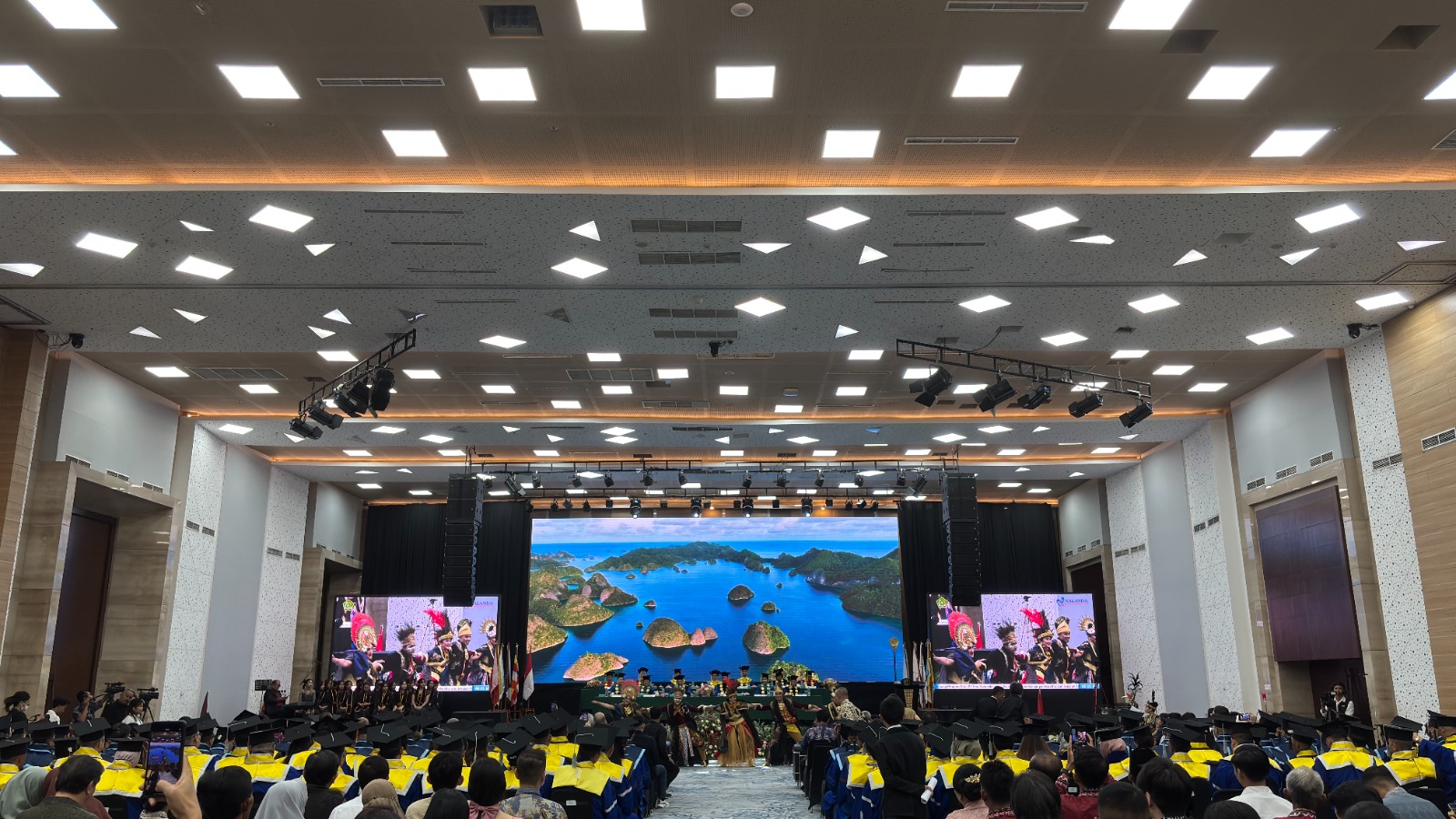 Dalam suasana yang dihadiri keluarga wisudawan, sivitas akademika, dan sejumlah tokoh pendidikan, jajaran Senat Akademik memasuki ruangan dengan iringan musik prosesi. Layar panggung menampilkan corak budaya Nusantara, mempertegas identitas Nalanda sebagai kampus yang berakar pada nilai kebajikan dan inklusivitas.