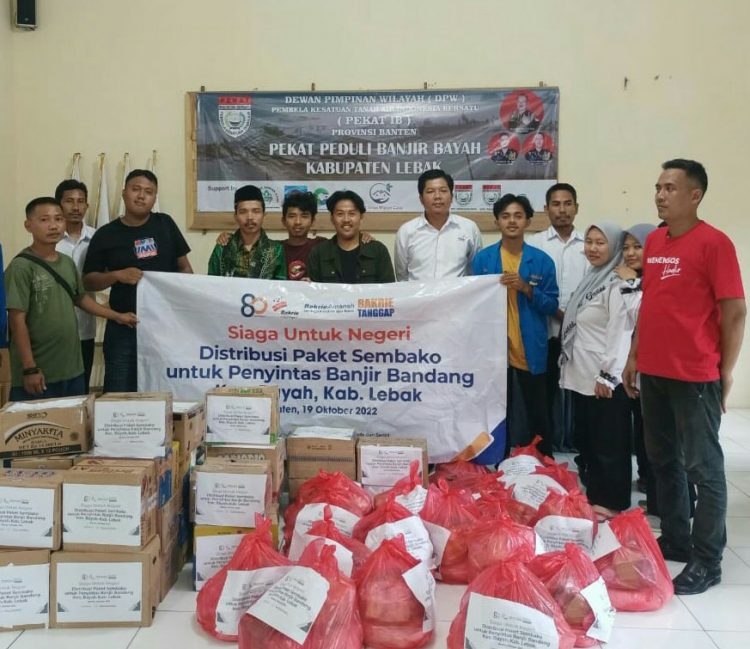 Yayasan Bakrie Amanah memberikan bantuan sembako untuk masyarakat terdampak banjir bandang di Kecamatan Bayah Kabupaten Lebak Provinsi Banten. Bantuan berupa kebutuhan bahan pokok sebanyak 100 paket itu disalurkan langsung melalui Kelompok Pemuda dan Santri (KPS), pada Rabu, (19/10/2022).